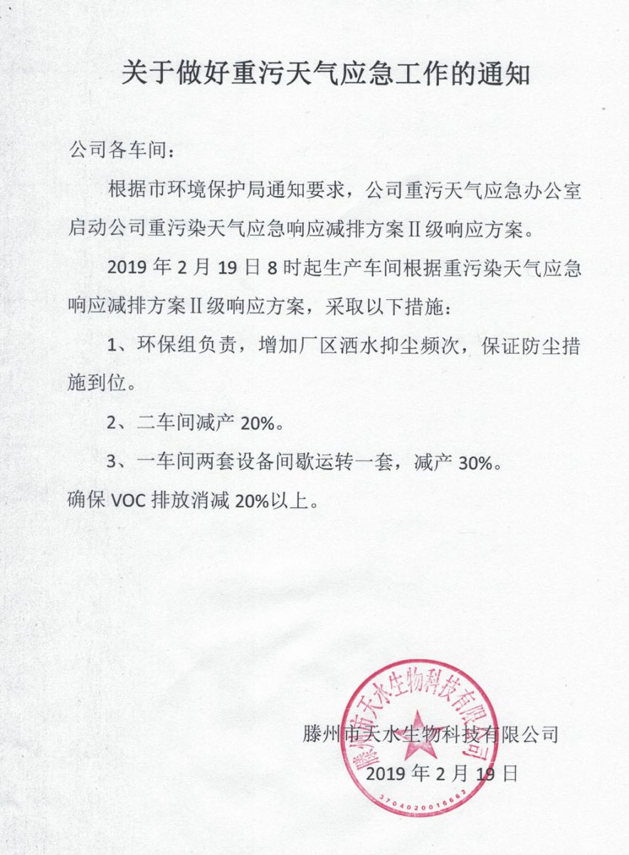 關于做好重污天氣應急工作的通知