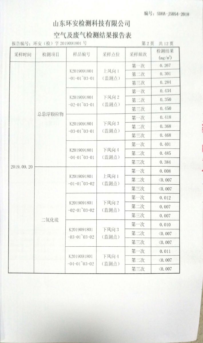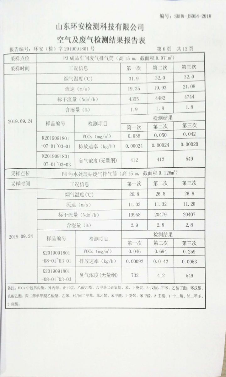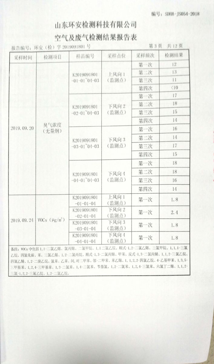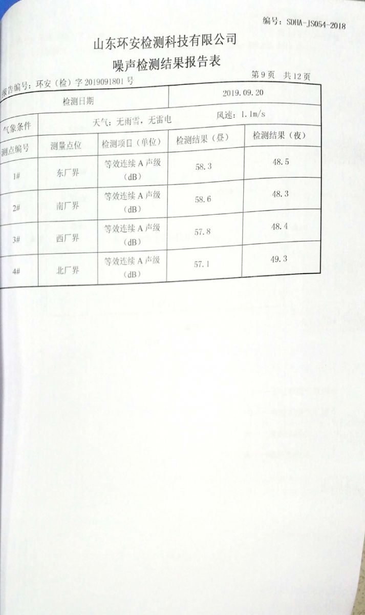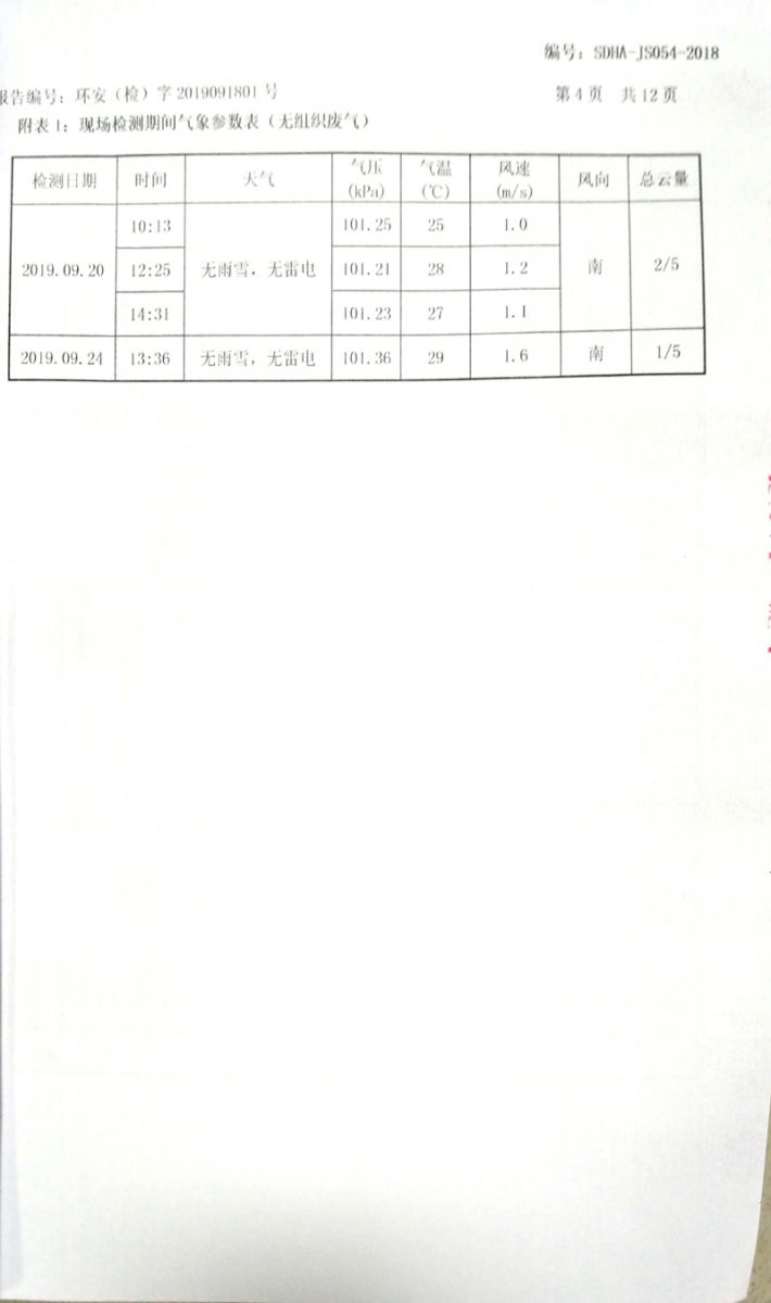 2019第三季度環(huán)境指標檢測報告:全部合格