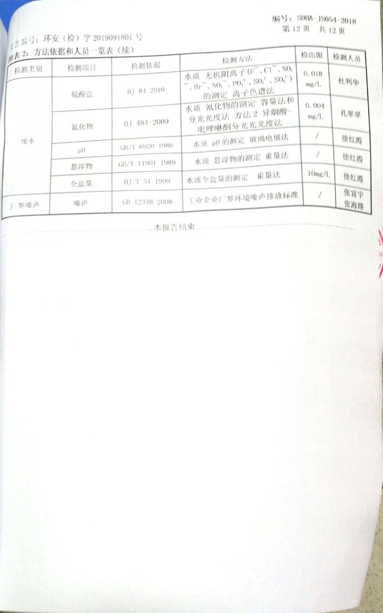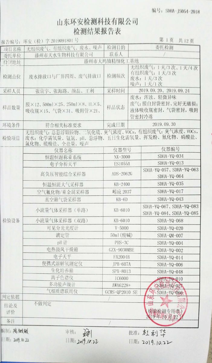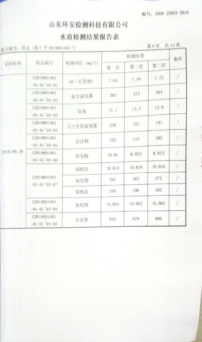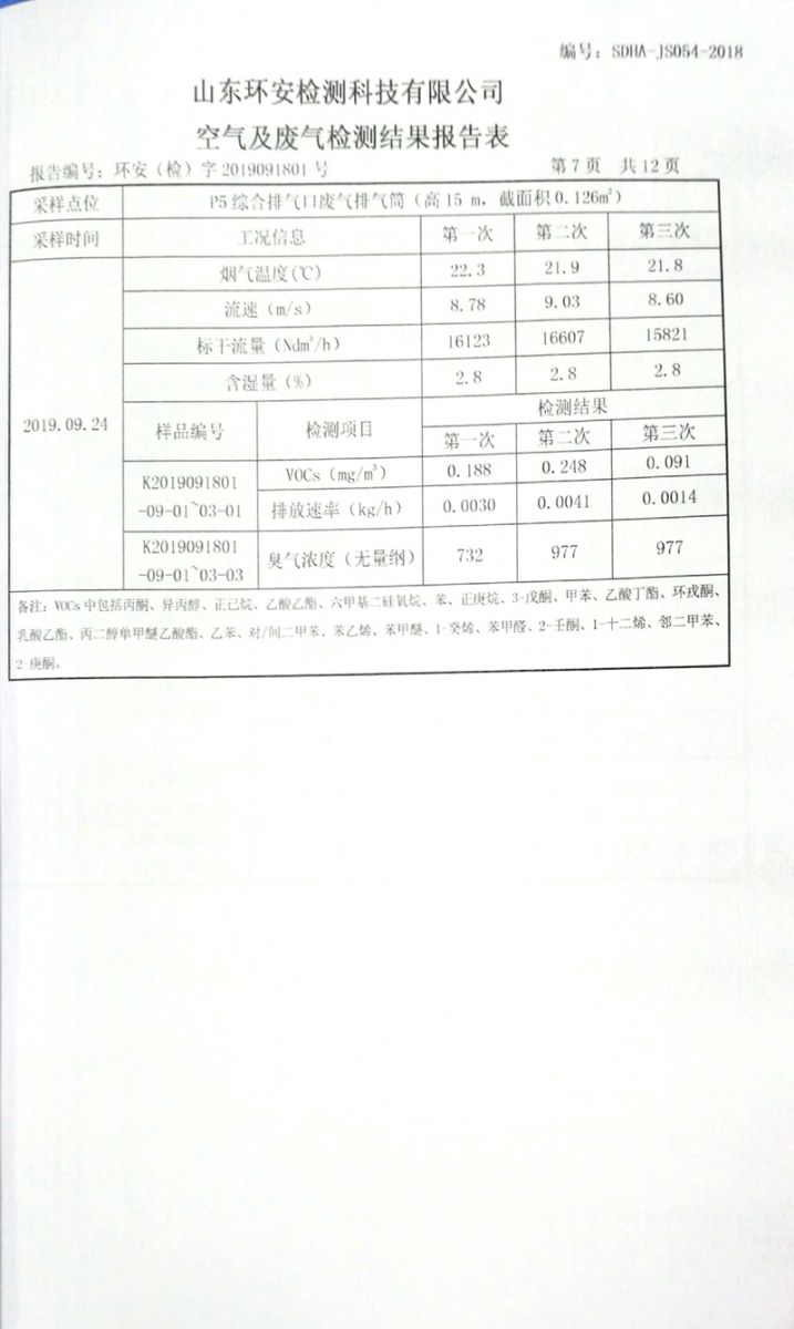 2019第三季度環(huán)境指標檢測報告:全部合格